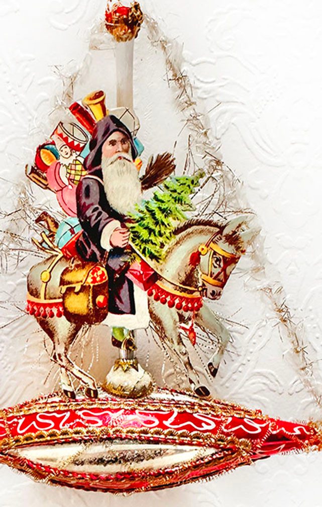 ***Our ornaments are almost exclusively made with vintage and antique materials 1880s-1950 (all colorful die-cut paper illustrations are 120+ years old). Scroll past Special Features for details***