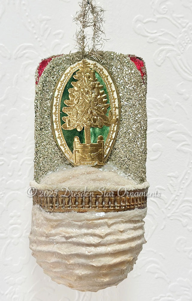 Since many of our creations contain glass ornaments that are as much as 120 years old, the condition and patina will vary, which this is part of their vintage one-of-a-kind charm and character. Items described as “antique” are dated between the 1870s and 1920. Items described as “vintage” are dated between the 1920s and the 1950s (mid-century). We also use newer Dresden trims (on occasion) and crinkle wire (to wire-wrap ornaments for durability) made more recently in Germany using techniques and equipment that have not changed over the past 150 years.