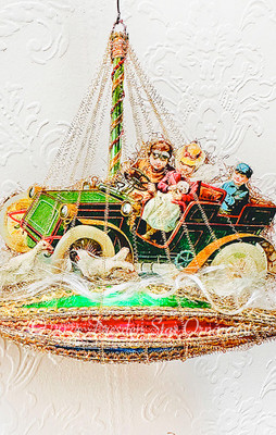 To see separate listings of New Arrivals, Glass, Cotton, Paper, Candy Containers and Toppers, Click Here. Each ornament is designed with antique and early vintage materials (ranging from 130 to 70 years old)  and is carefully handcrafted from scratch as a brand new creation. Every ornament is a work of art and is hand-signed by artists Gail or Glenn Giaimo.